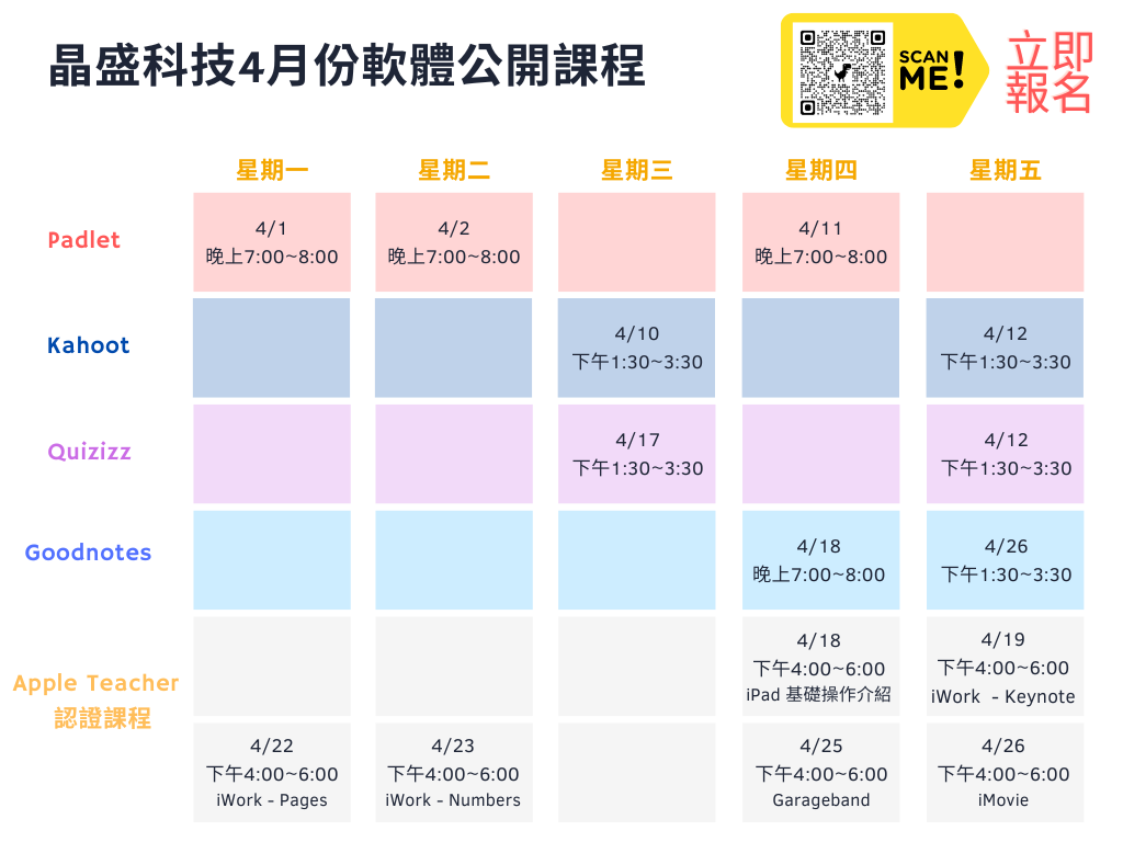一、旨揭研習資訊及課程內容請參閱。 二、研習對象:本市所轄各級學校教師。 三、研習期間:113年4月1日~113年4月30日止。 四、報名連結:https://forms.gle/qD56vhQenEukKV3z7 ,研習場次請詳閱附件1,各場次人數上限為500人。 五、請各校本權責惠予參加人員公(差)假及課務排代。 六、本案如有疑義請逕洽晶盛科技 曾先生 04-2329-7966;itan.2715@jstech.com.tw。