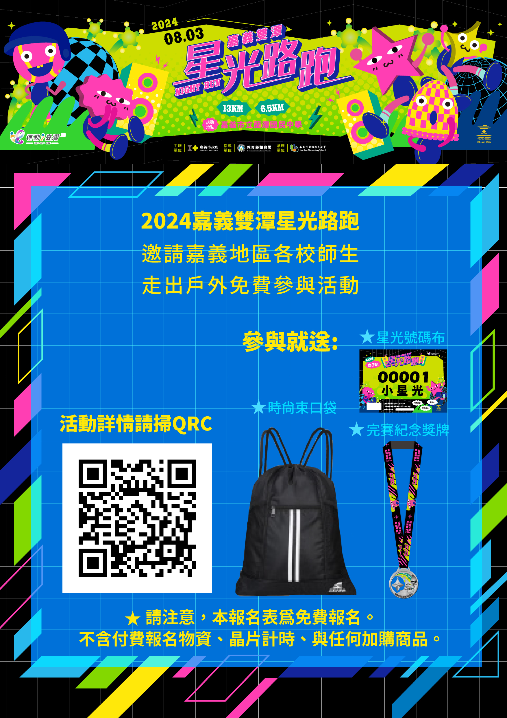 三、免費報名僅提供6.5公里號碼布及紀念品(於活動當天賽後會場憑號碼布領取),不含付費報名物資、晶片計時、與任何加購品,報名即可參與活動。